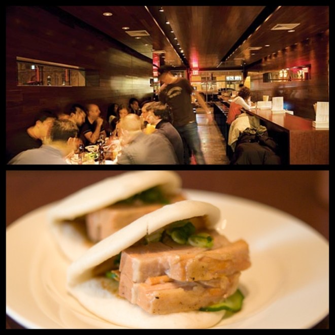 Momofuku (which means lucky peach) is a walk-in only restaurant with reservations only accepted for the bo ssäm pork shoulder (serves 6-10 people) and the whole-rotisserie duck ssäm (serves 3-6 people).