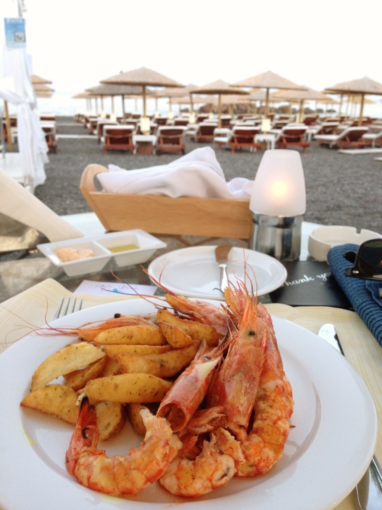 While it is possible to cover most of the island in a day, I decided to keep my bike for an extra day and cool down with a swim in the pool and an ice-cream before dinner at White Restaurant along Kamari beach.