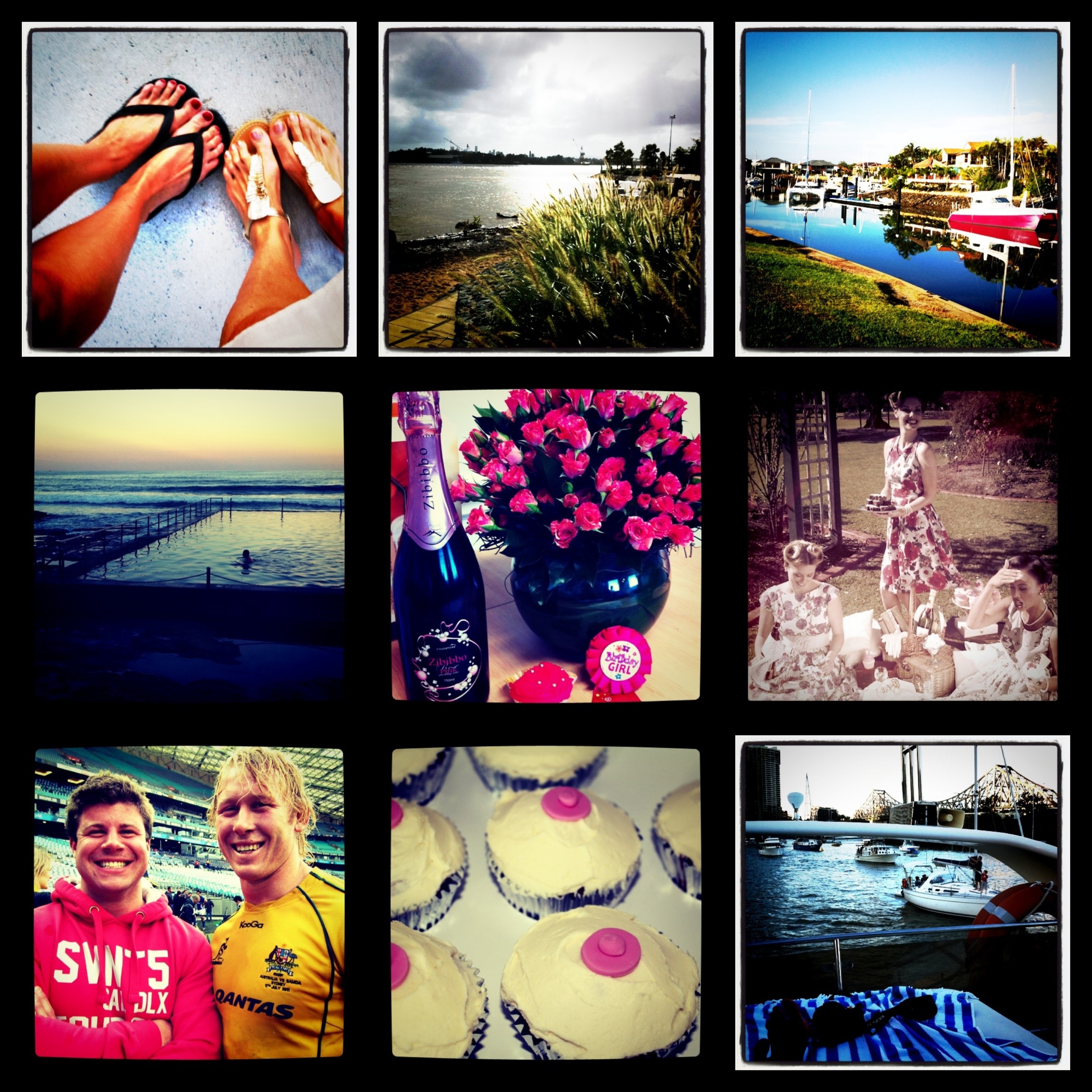 (L-R) Mum and I in Fiji, the Brisbane River before the 2011 floors, lazy days in Raby Bay, afternoon swim in Cronulla, my favourite kind of birthday presents, photoshoot in New Farm Park, Michael and Beau after his debut for the Wallabies, cupcakes for Breast Ever Brunch, waiting for Riverfire 2011.