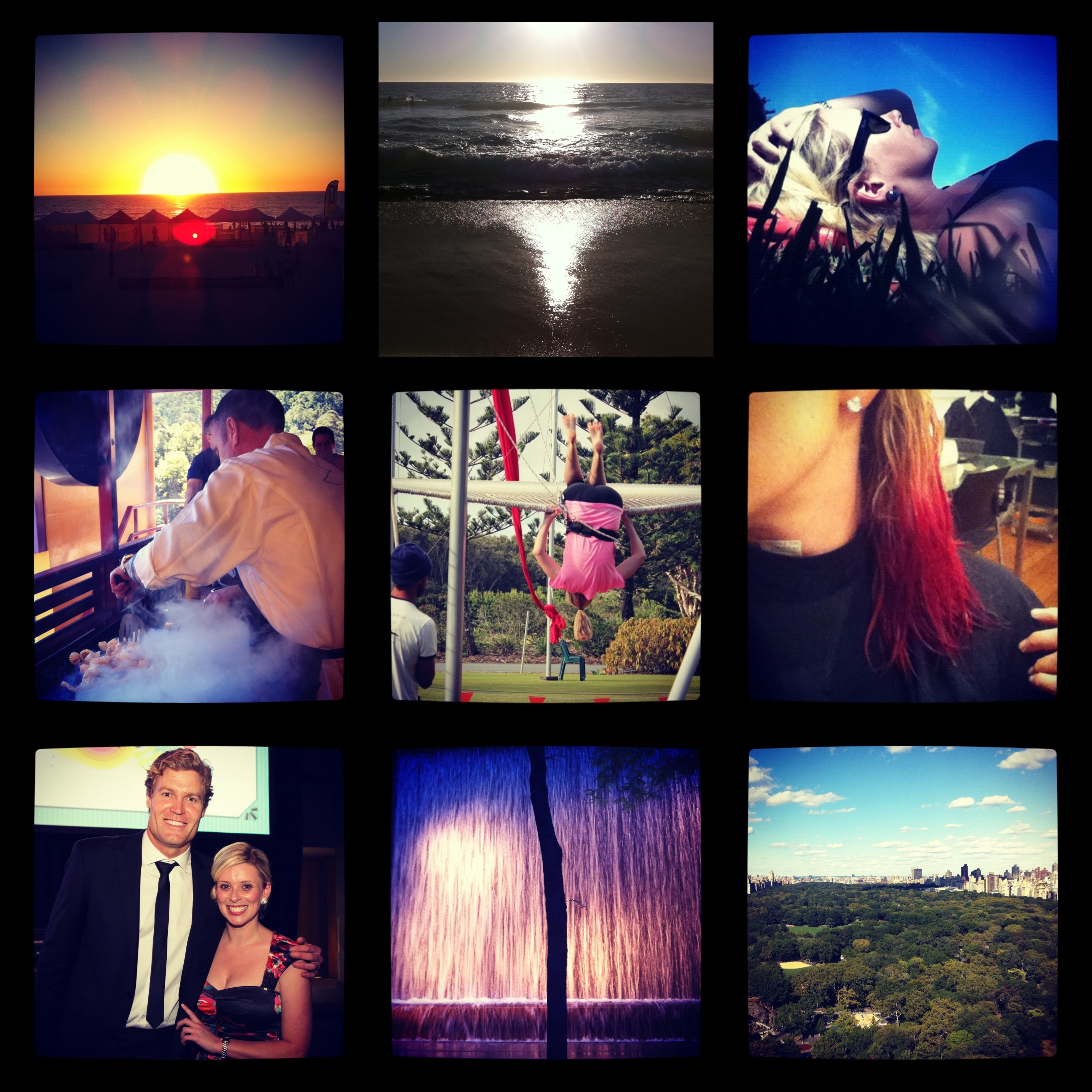 (L-R) Team bonding with the girls, summer boating, waiting for the Queen with Lady Erin, Melbourne Cup Day 2011 at Eagle Farm Racecourse with Reshni, Paspaley Polo in the City, taking my new wheels for a spin on Christmas Day 2011, a perfect little butterfly spotted on my morning walk, beach art at Byron Bay and the gorgeous Miss Lucy who was approaching her first birthday.Two very different sunsets over the beach in Perth, an afternoon snooze in Perth’s Kings Park, learning how to get my grill on at barbecue cooking class, an epic dismount durning my trapeze lesson, time for a colour change, with Bondi Vet’s Chris Brown (my co-host) at our work gala, a beautiful inner-city waterfall I stumbled upon off 5th Avenue in New York, an impressive view of Central Park from New York Athletic Club (it’s all about who you know!).
