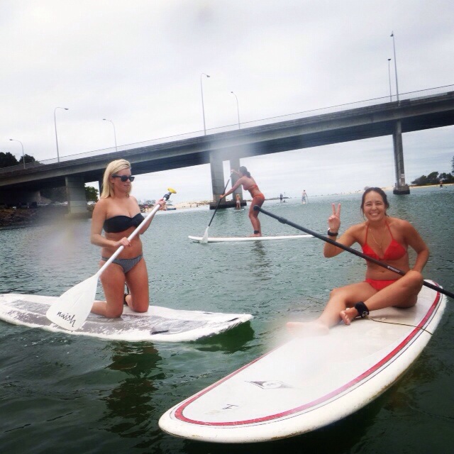 On Saturday, I grabbed my togs and towel and headed to Currumbin with Bianca, Ange and Fabio to try my hand at SUP (I was also hopeful that an hour on the water would miraculously transform my post-Christmas cheer into a serious beach bod).