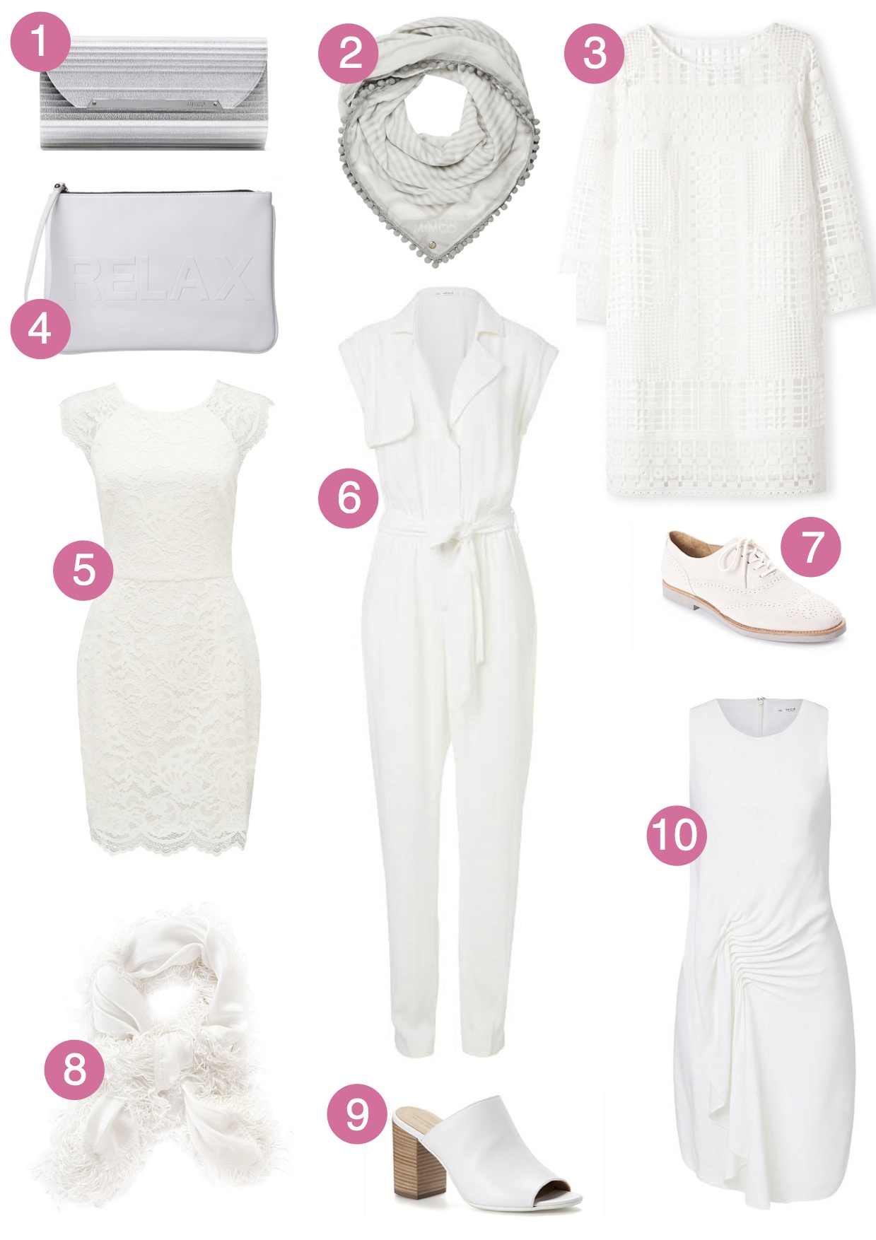 1. Mimco Premiere Clutch, $179 | 2. Mimco Luxurian Scarf, $69.95 | 3. Country Road Broderie Detail Shift Dress, $229.95 | 4. Colette Hayman Relax Clutch, $19.95 | 5. Forever New Nikki Lace Bodycon Dress, $149.95 | 6. Seed Heritage Utility Wrap Jumpsuit, $169.95 | 7. Country Road Hayden Brouge, $149.95 | 8. Country Road Fringed Scarf, $79.95 | 9. Country Road Antonia Mule Heel, $179 | 10. Seed Heritage Drape Evening Dress, $189.95.