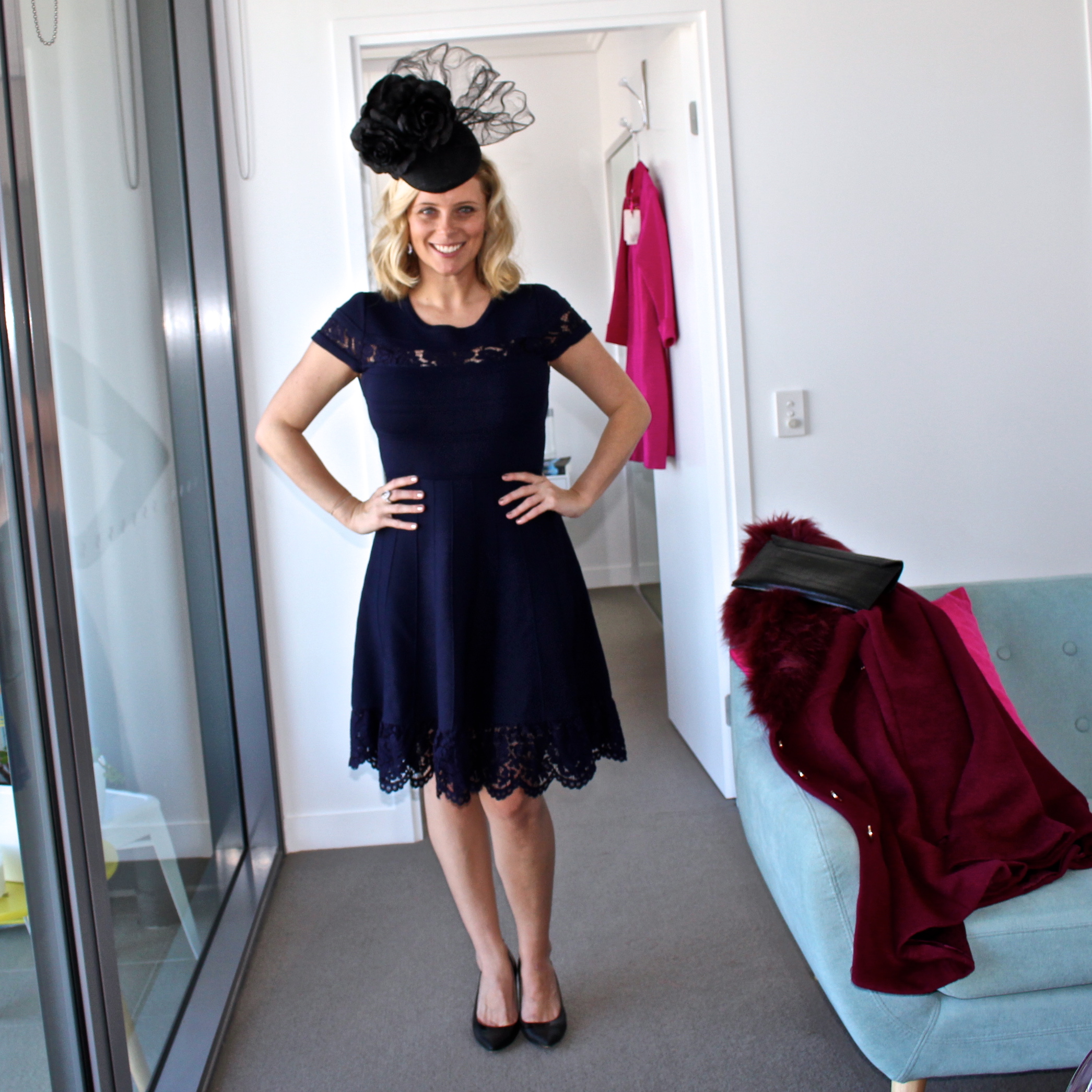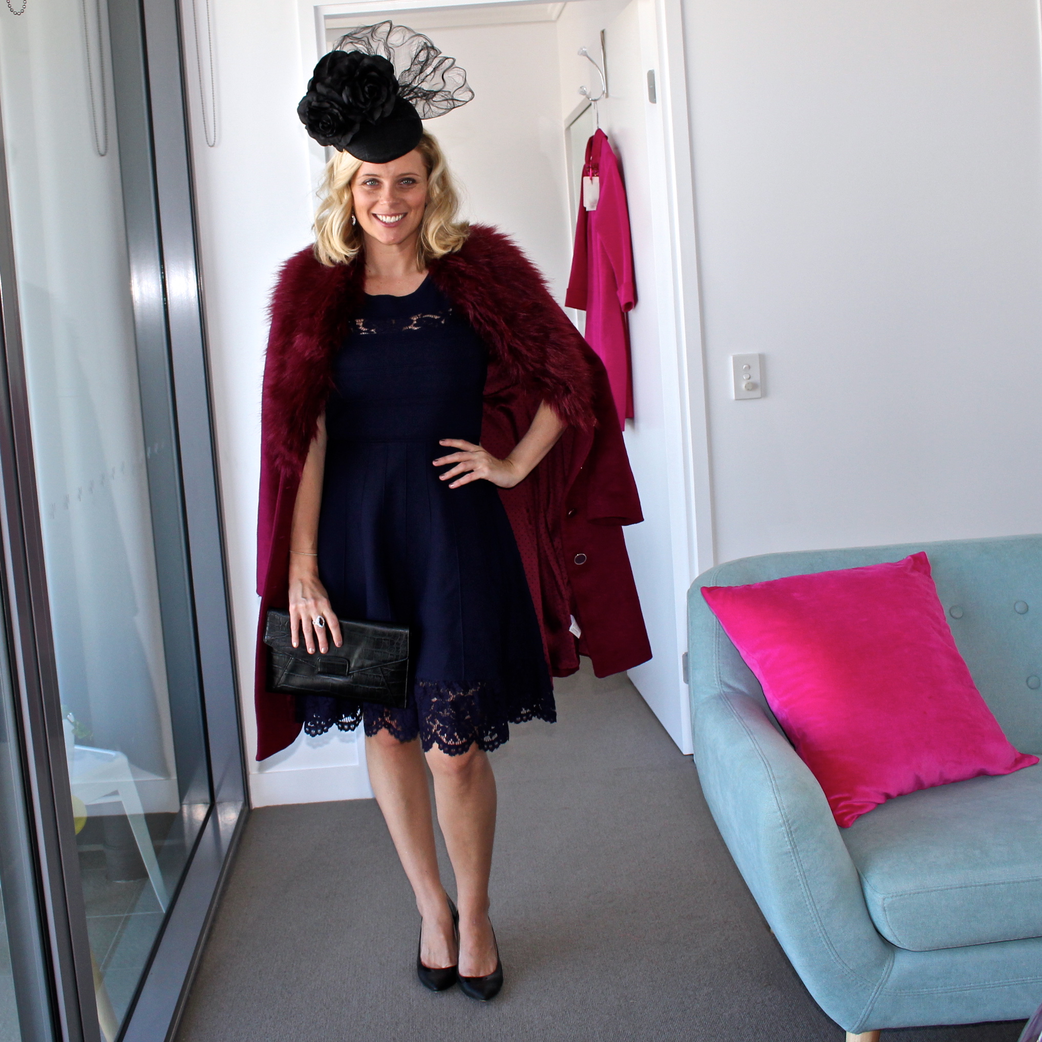 Thankfully it was warm inside out marquee so I could get away with it being mostly backless. I teamed it with accessories from Witchery, Nine West and Forever New and a fascinator from The Fillies Collection at David Jones. I also took my black Marcs leather jacket for after-races festivities at Sixes and Sevens and Chow House on James St.