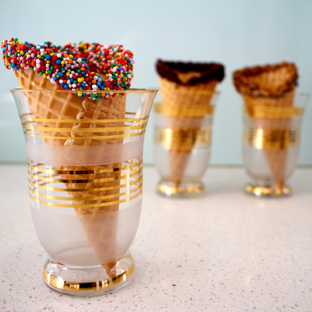 Chocolate dipped waffle cones: