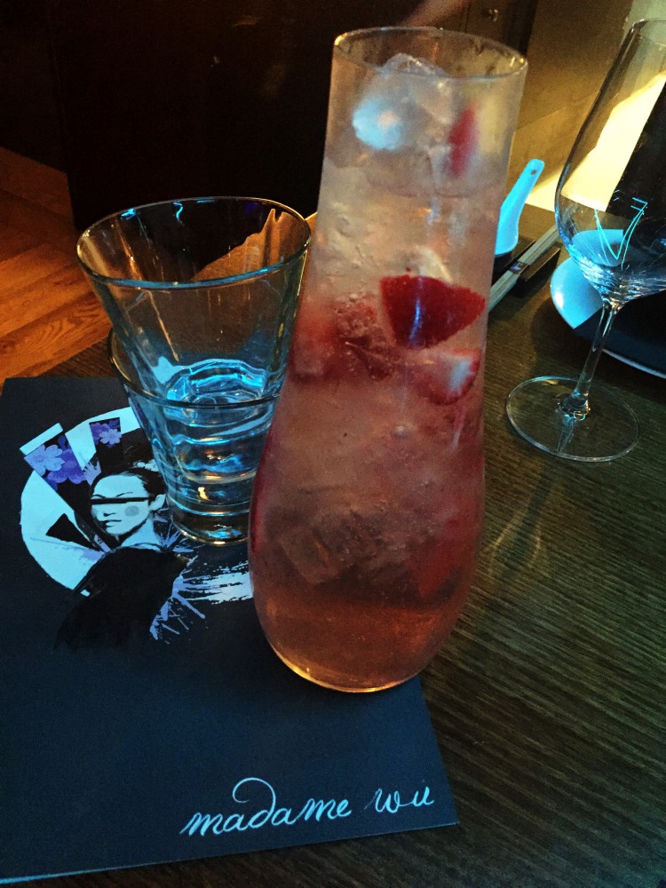 Gorgeous Geisha White Sangria with ketel one vodka, pavan, strawberries and rose water topped with sparkling wine and soda water.