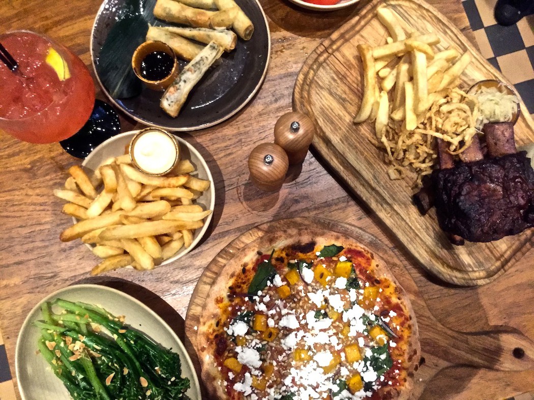 We shared the Alla Zucca pizza with roasted pumpkin, goat’s cheese, spinach, mozzarella, pine nuts and red onion ($20), Barramundi and Prawn Spring Rolls with black garlic dipping sauce ($17) and Meaty Beef Short Ribs with sauerkraut, chips, crispy fried onion ($33).