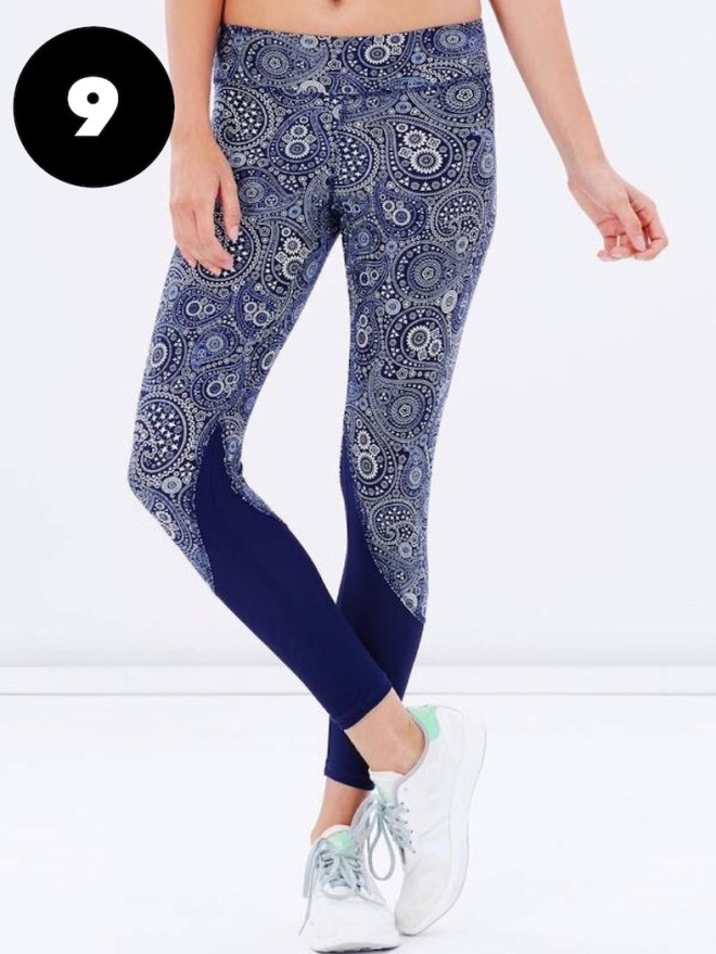 1. Tiff Manuell Back Streets Tights, $89 || 2. Lululemon Real Quick Tights, $119 || 3. Lorna Jane Booty Support Full Length Tights, $110.99 || 4. Bonds Active Micro Full Legging in round animal print, $59.95 || 5. L’urv Pineapple Juice Leggings, $49.50 || 5. Lilybod Milla Spearmint Soda Leggings, $97 || 6. Skins Long Tights, $149.95 || 7. Cotton On Body Active Printed Core 7/8 in indigo tie dye, $15 || 8. Atmos Active Shoju Print Panel Tights, $49.95.