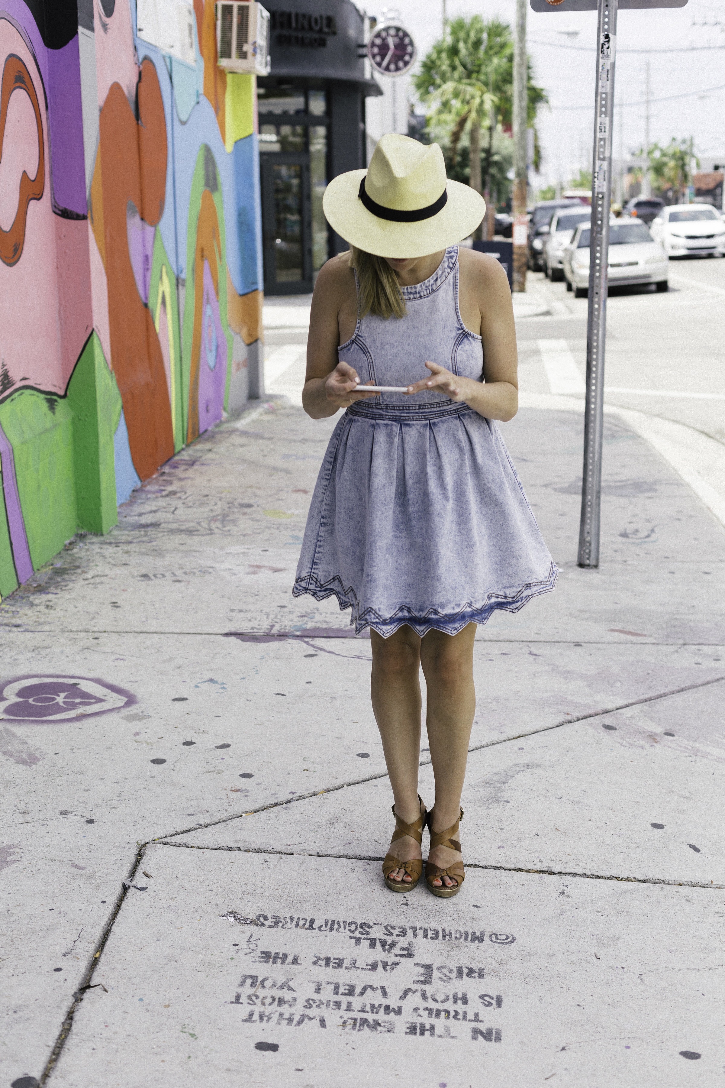 Aje denim dress | Mimco bag | Ace of Something hat | TopShop wedges. Photo by Shoot My Travel.