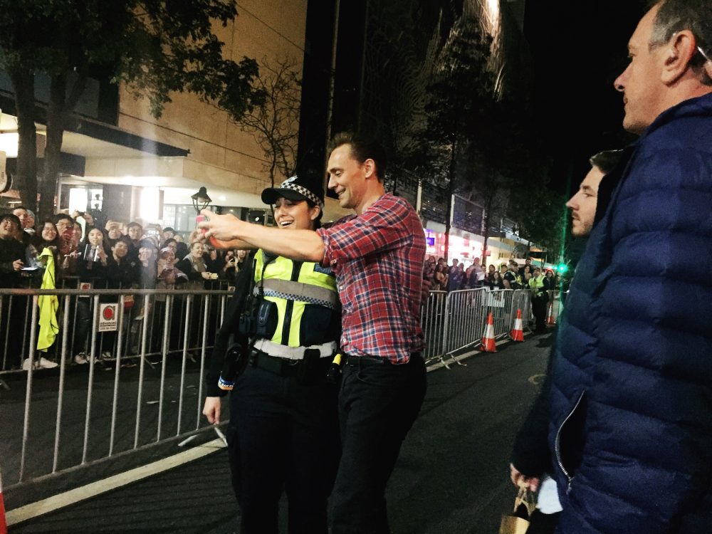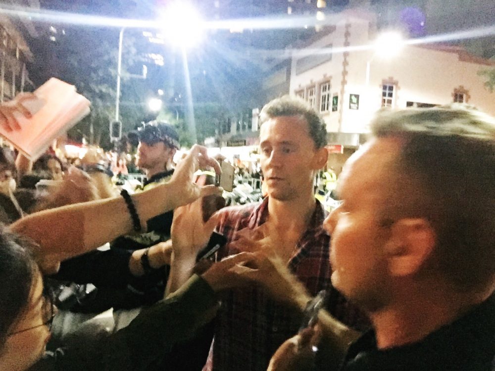 Hiddles, handsome as he is (and brilliant in The Night Manager … If you haven’t seen it check it out. I’m tipping him to be the next Bond so remember you read it here first) anyway, back on topic, Hiddles was taking ages to work his way around the crowd.