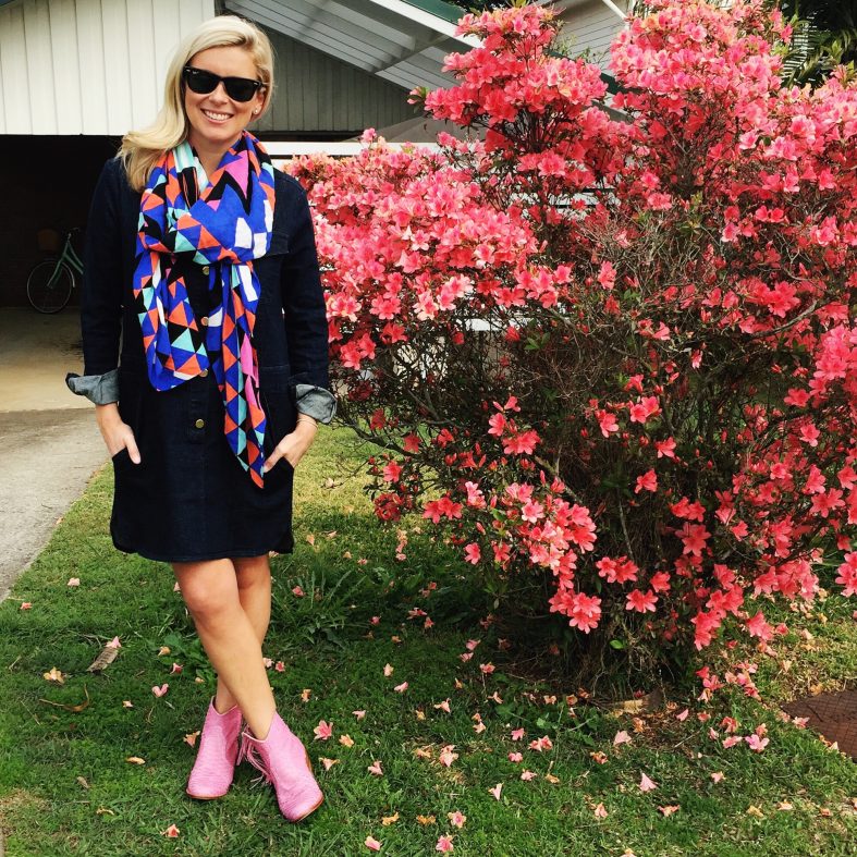 Seed Heritage denim dress | Kookai scarf | Jfahri boots