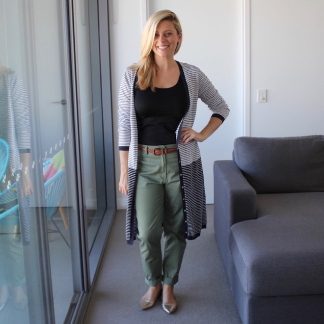 Witchery tank | Country Road pants | Metalicus cardigan (gifted) | Witchery flats