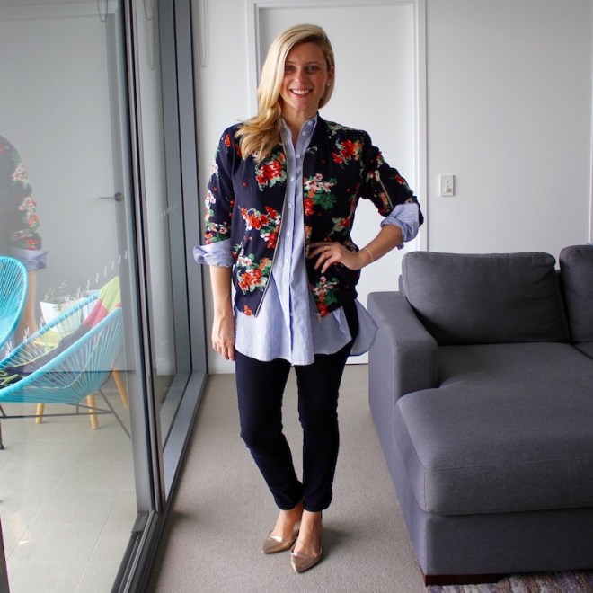 Bardot shirt | Zara bomber jacket | Witchery jeans and flats