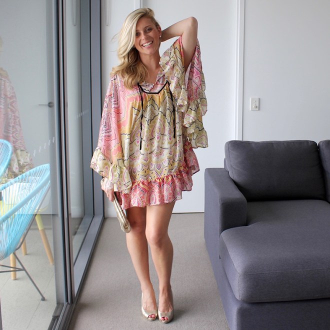 Sunday | Dreamers and Drifters top (worn as dress) | Oroton clutch | Seed Heritage heels