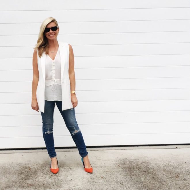 Saturday | Witchery Sleeveless Gather Shirt | Witchery Gathered Back Gilet | Witchery jeans (not current) | Zara heels