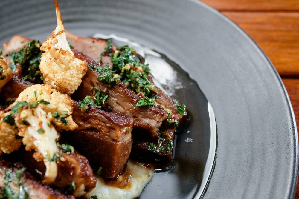 Slow cooked pork belly, in a soy and ginger sauce.