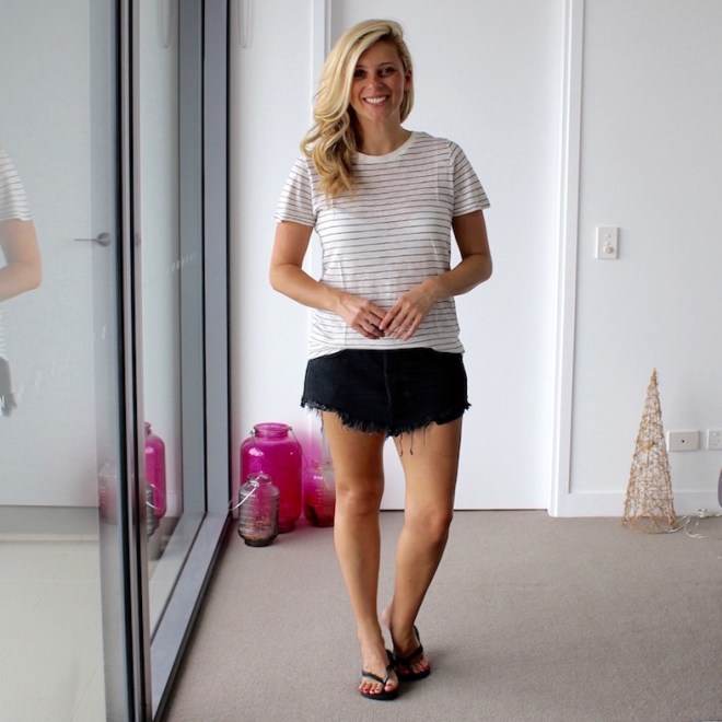 Monday | Witchery shirt | Cotton On frayed mid-rise denim shorts | Zurii Freya tote | Steve Madden wedges