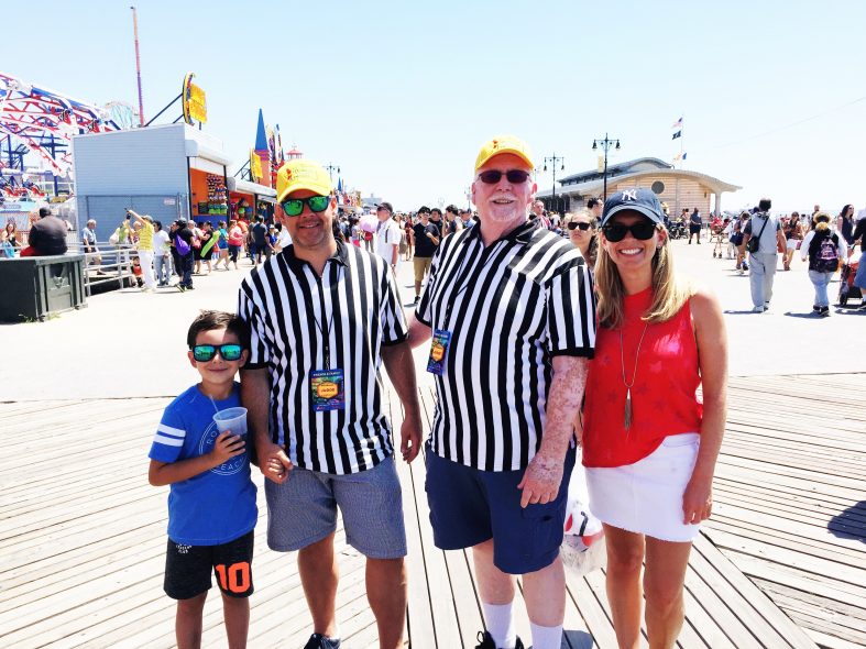 Hanging out with two of the official judges for the Hot Dog Eating Contest.