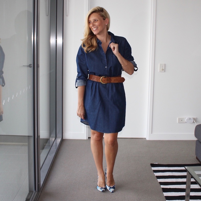 Tuesday | French Connection denim dress | Vintage belt from Topshop | Nine West heels