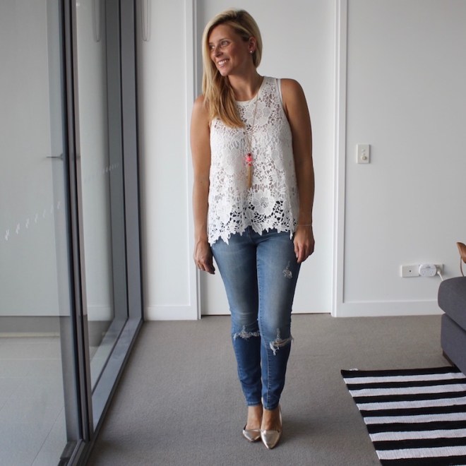 Friday | Zara lace top | Kate Spade New York necklace | Witchery jeans and flats