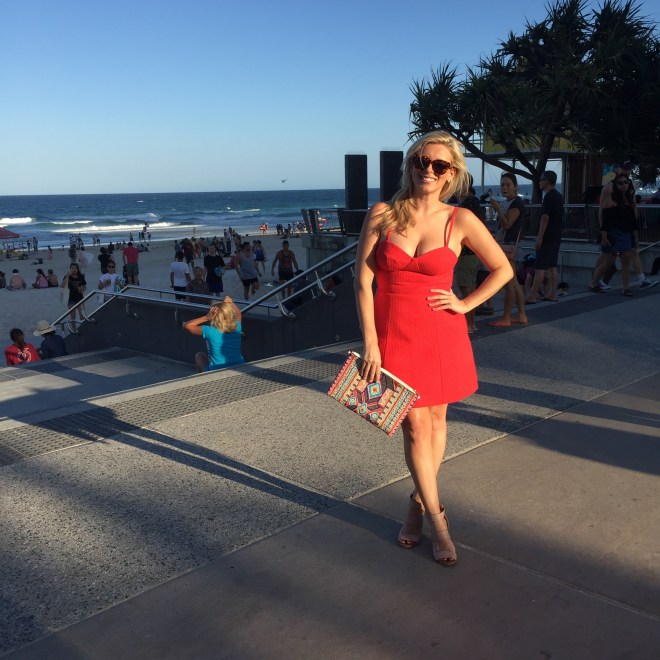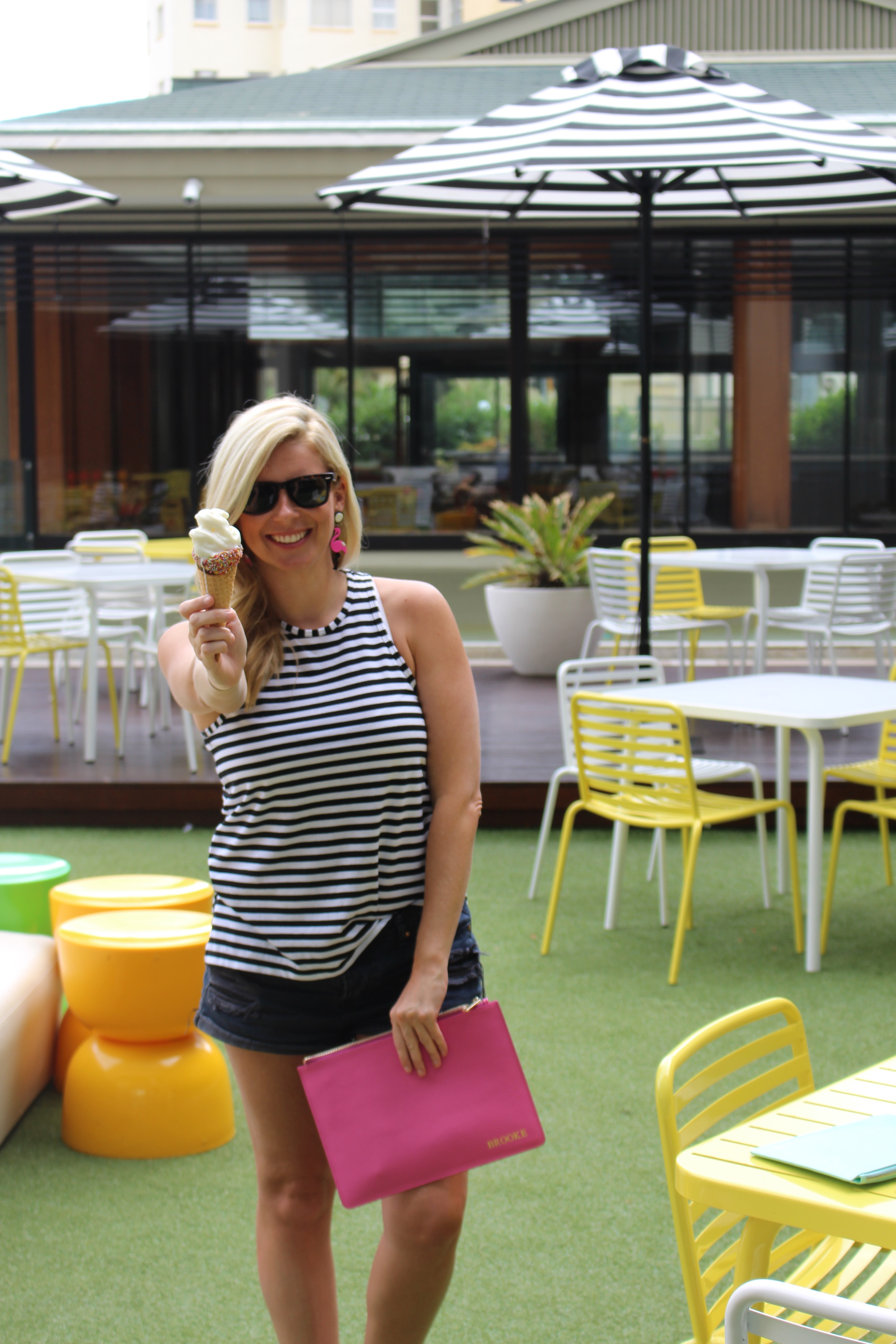 Sunday | Target singlet | Cotton On shorts | Miss Monogram Victoria Clutch (find it here) | Oroton sunglasses (Photo by Katy Potaty)