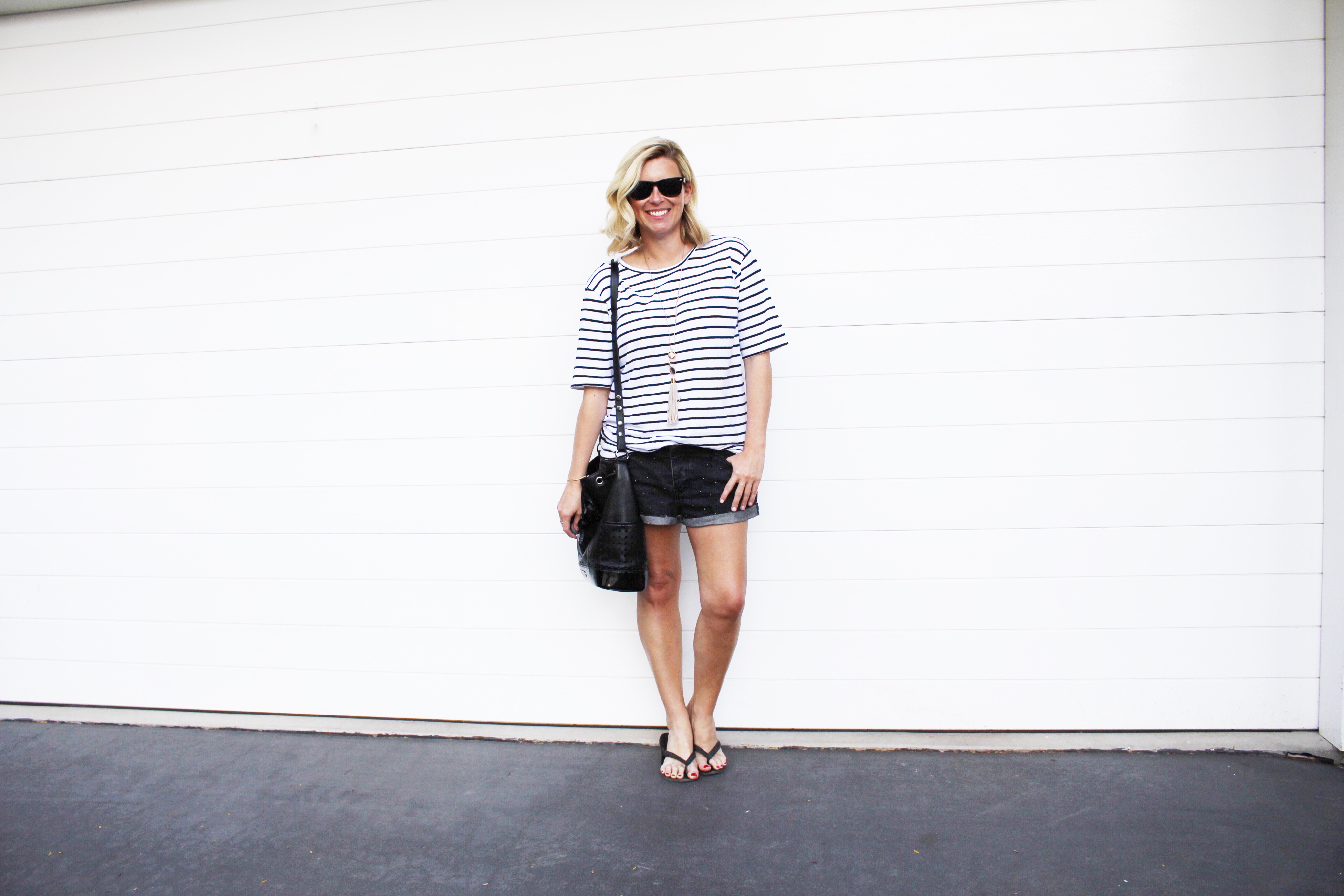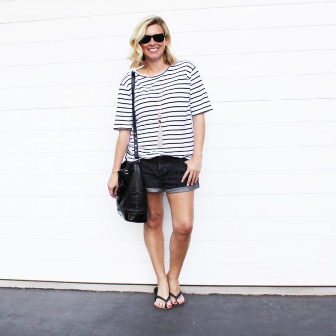 Monday || Assembly striped tee | Cotton On denim shorts | Mimco bag