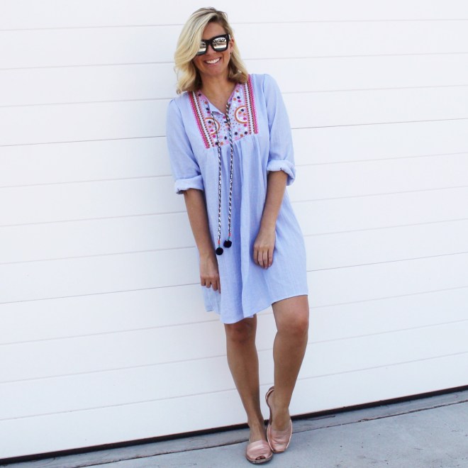 Sunday || Santiago Embroidered Dress from The White Owl Boutique (kindly gifted, I’m wearing a small) | Avarcas Australia rose gold metallic sandal (kindly gifted)