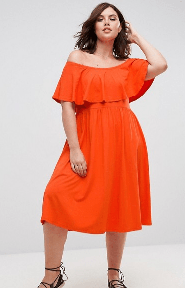 7. ASOS CURVE Ruffle Bardot Midi Skater Dress