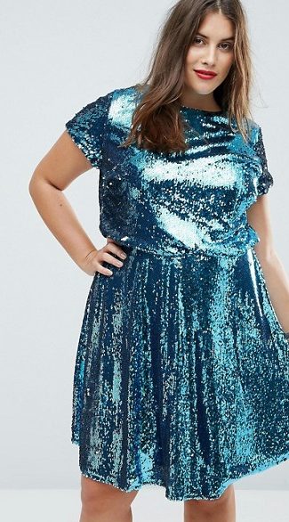 11. TFNC Plus T-Shirt Mini Skater Dress In Two Tone Sequin
