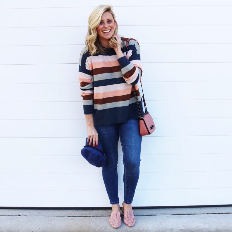 Saturday || Emerge Stripe Sweater from Ezibuy (gifted) | Seed Heritage Mid Rise Skinny Jean | Coach bag | Rubi Mules | Miss Shop Baker Boy hat