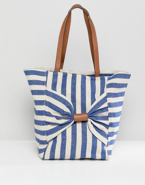 Oasis shopper bag with bow detail in stripe