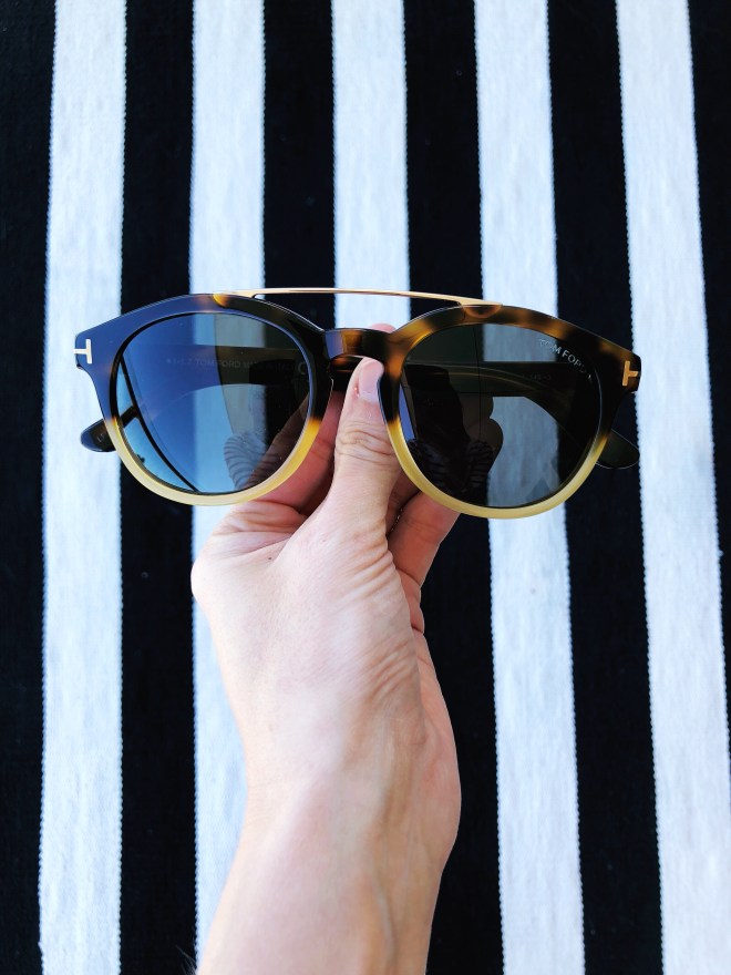 However, I recently branched out and ordered a pair of unisex Tom Ford tortoiseshell sunglasses from VisionDirect.com.au. The style I chose had some Wayfarer-vibes, although slightly more rounded lenses and a gold bar across the top.
