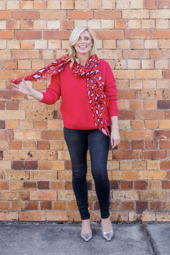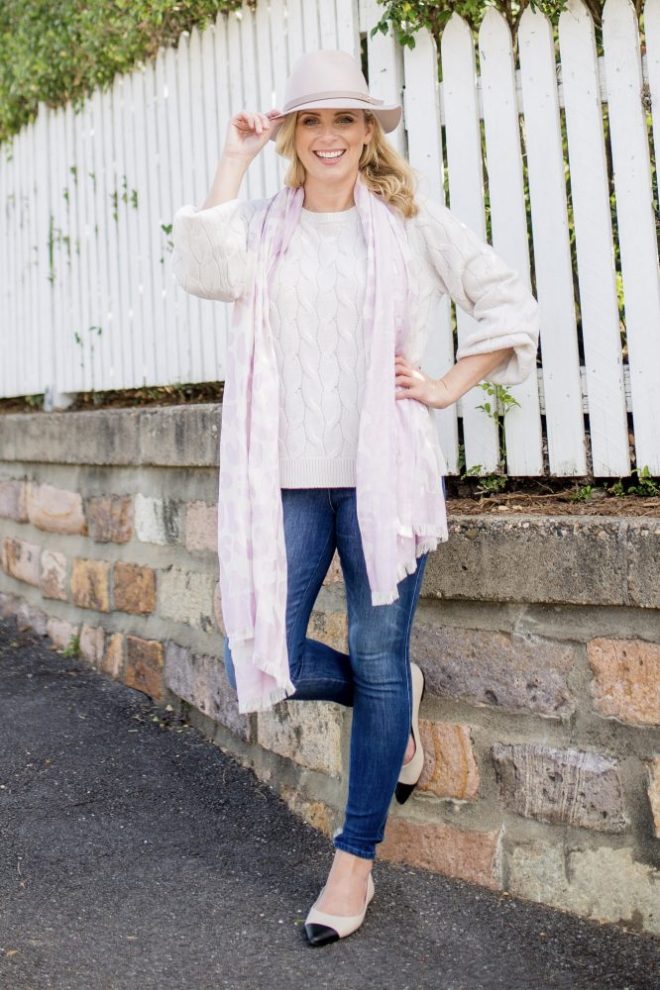 Wearing: Olivia Stitch Pullover, $69.99 | Lucinda Skinny 7/8 Jean, $109.99 | Quinn Scarf, $34.99