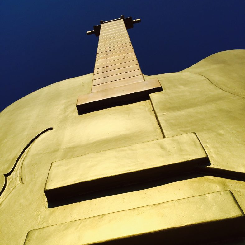 Tamworth’s Big Golden Guitar stands 12m tall.